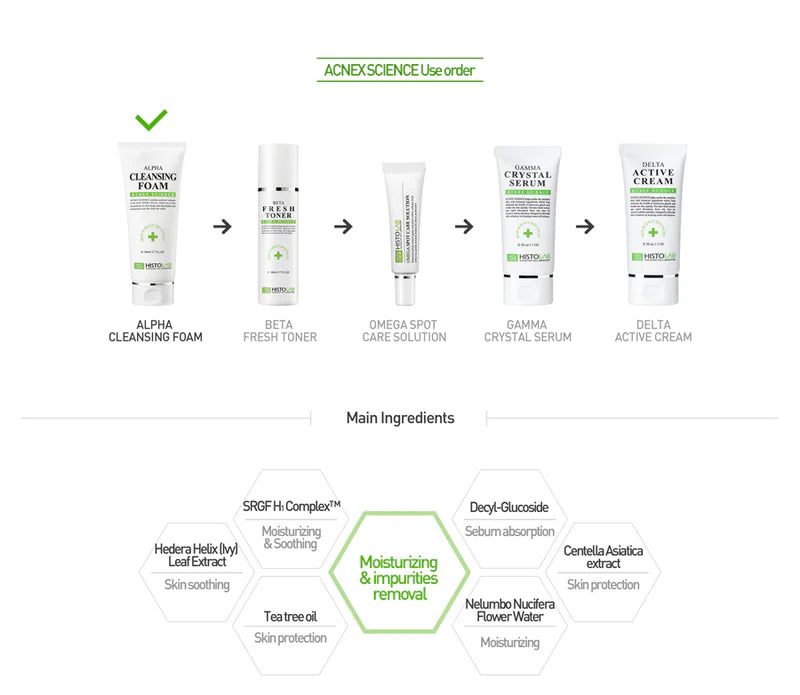 Gel-typed of mild anti-inflammatory cleansing foam helps clear bacteria and also soothes inflammation.