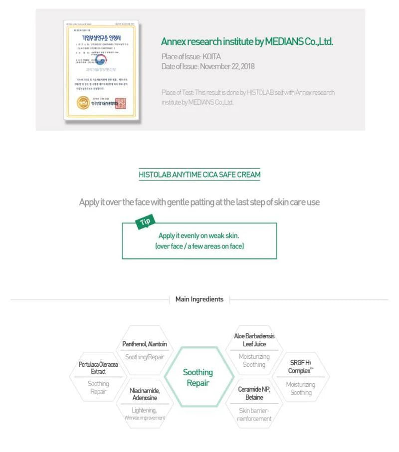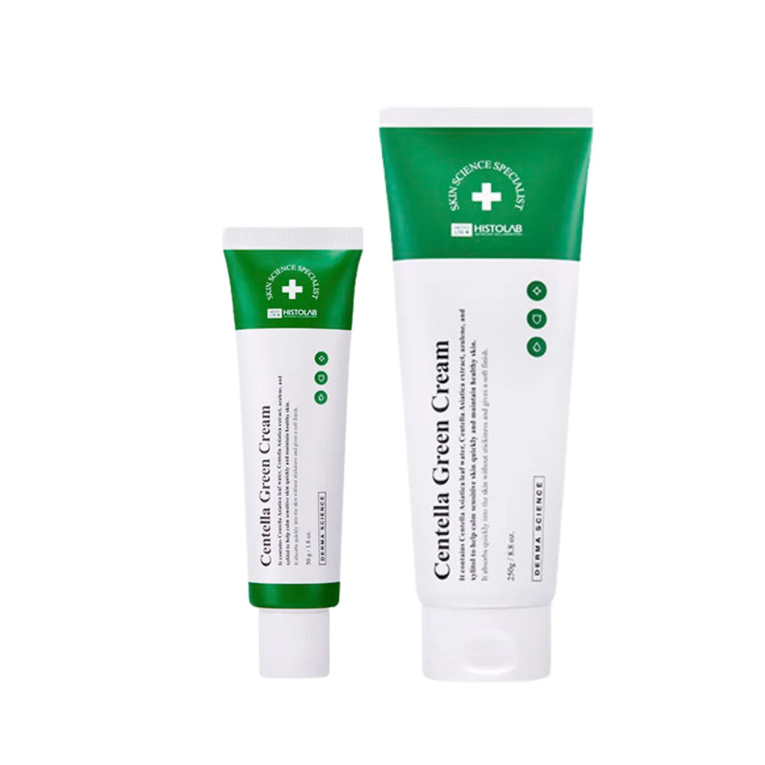 The revamped Histolab Centella Green Cream is formulated with Centella Asiatica Leaf Water and Centella Asiatica Extract to provide double the support for fast skin recovery. Xylitol helps to quickly cool the skin, alleviating burning sensations and erythema, while Azulene offers soothing care and addresses redness for a balanced and refreshed complexion.