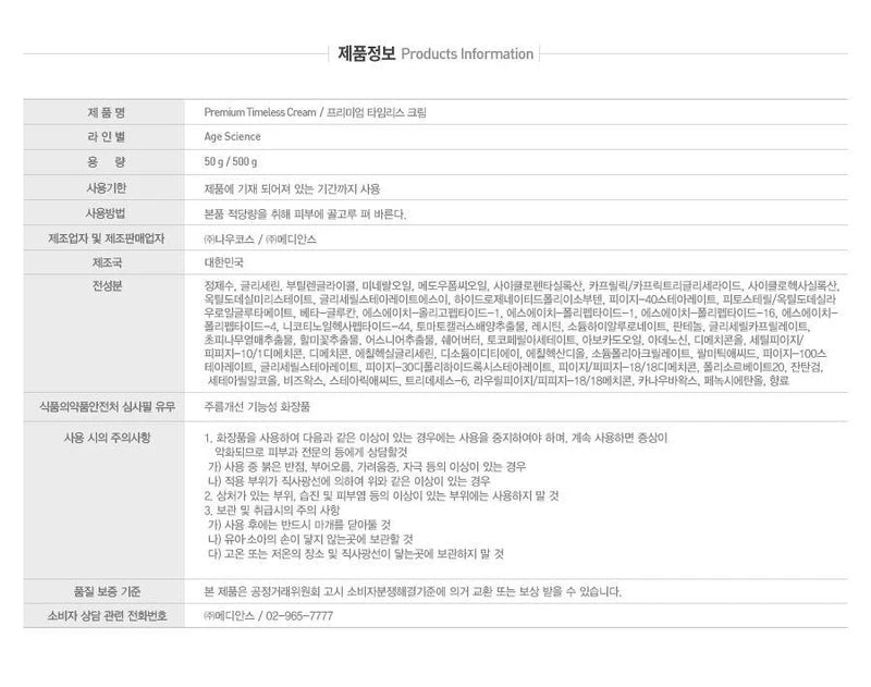 Premium Timeless cream contains Adenosine and Beta-Glucan which improve the skin softly and elastically. The key ingredient is Solanum lycopersicum (Tomato) Callus Culture Extract which promotes the synthesis of collagen leads to skin rejuvenation.
