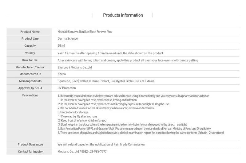 Sun Block Forever Plus is a hypoallergenic essence-type sun screen that protects the skin from UV rays without irritation. Suitable for all skin type, especially for sensitive and acne-prone skin.
