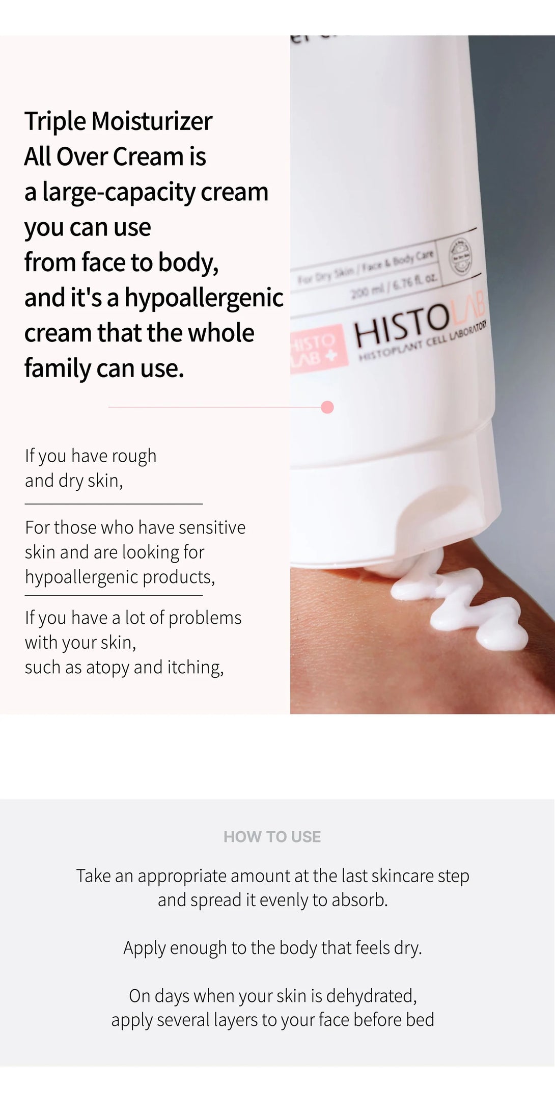 Take appropriate amount at the last step of your skincare routine, and apply it evenly on skin to absorb; If needed, apply enough amount on body where it feels dry. On days when skin is dehydrated, apply generous amount to face before bed.